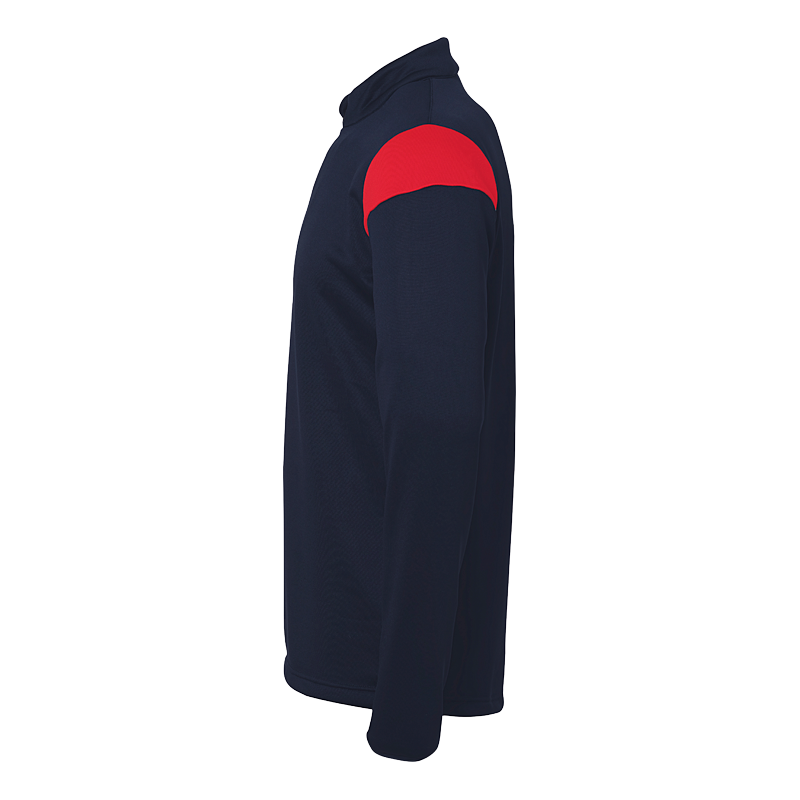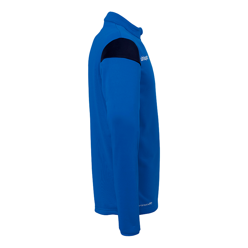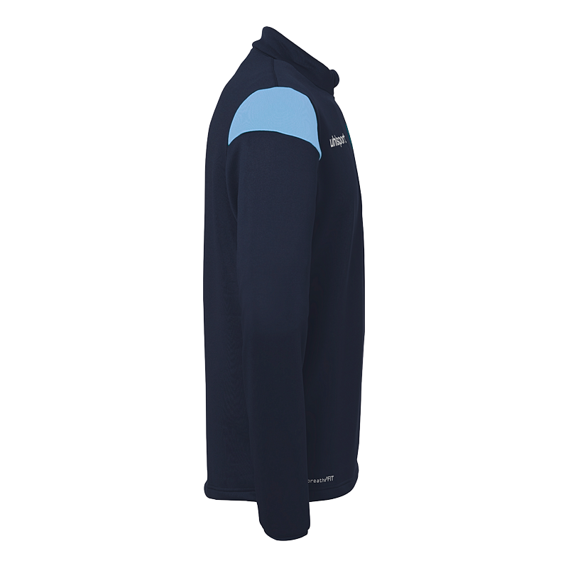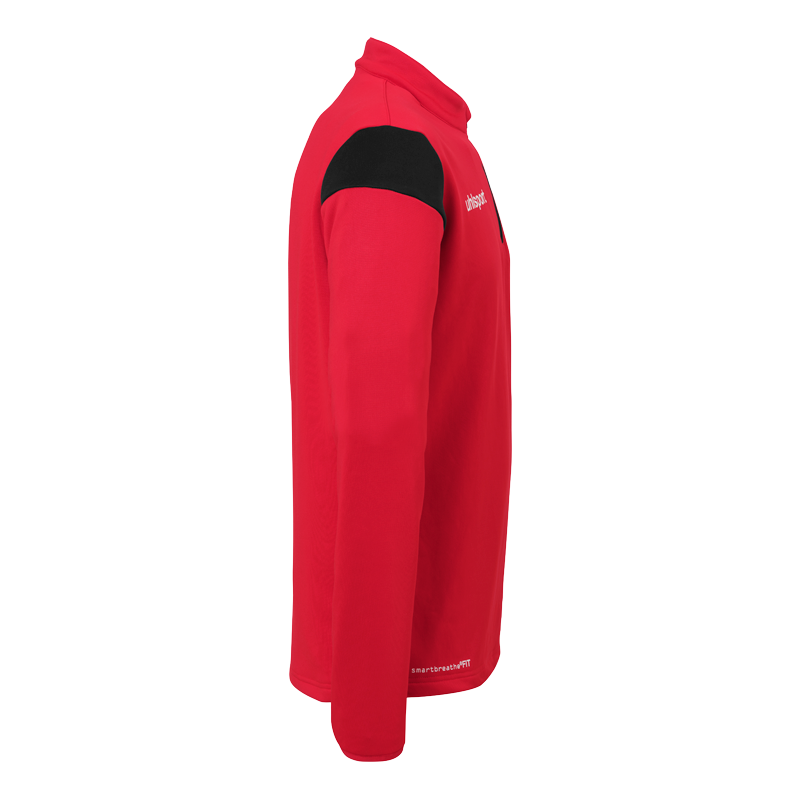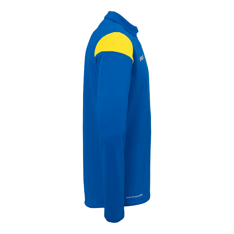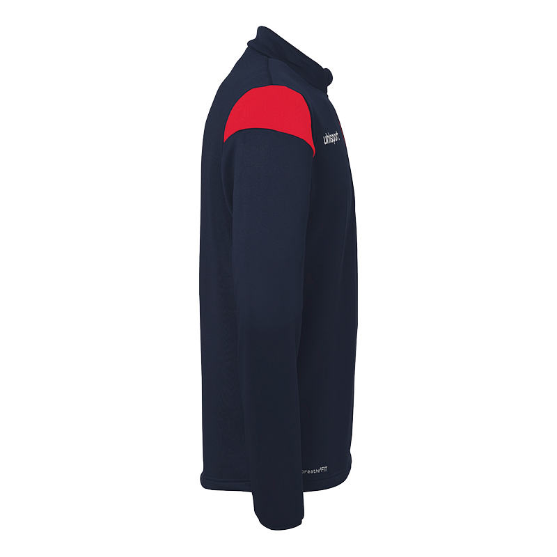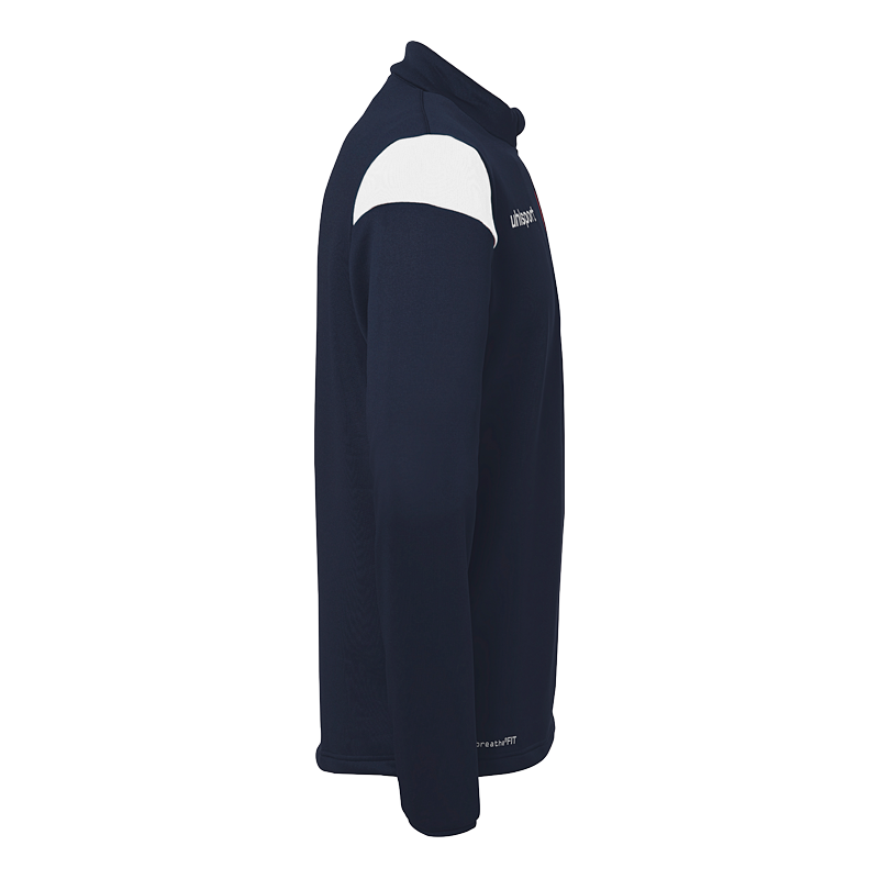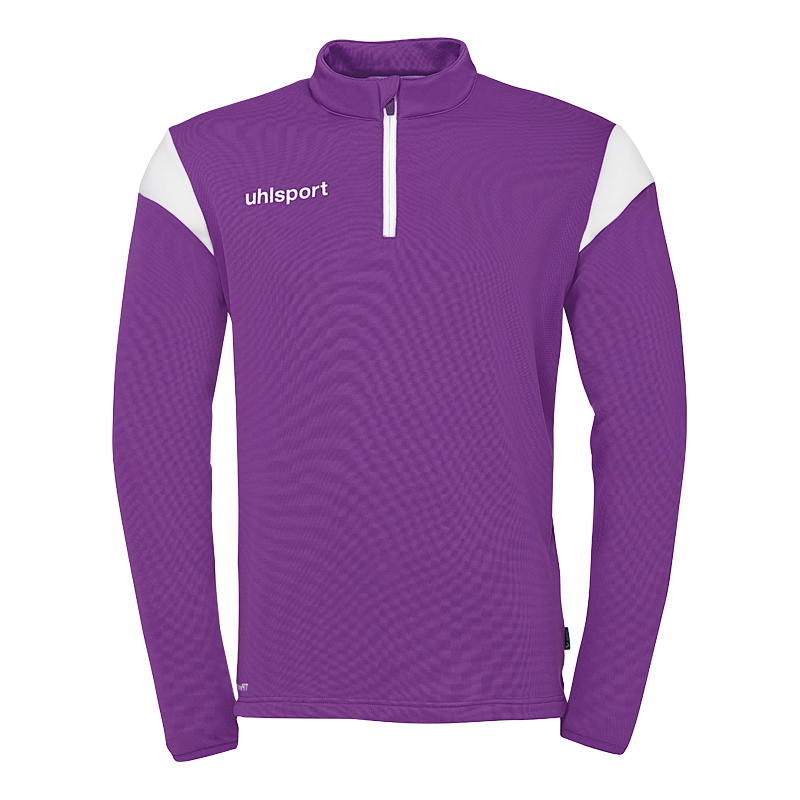 Trainingstop mit Reißverschluss / 1/4 Zip-Top aus der uhlsport-Kollektion „Squad 27“, welche bis 2027 nachbestellbar ist. Der Trainingspullover ist mit der atmungsaktiven Polyester-smartbreatheFIT Materialausstattung ausgestattet und ist Teil der „For The Planet“-Kollektion, welche aus recycleten Polyesterwaren besteht.