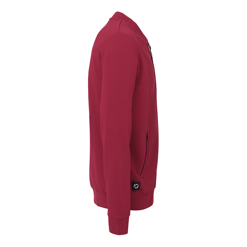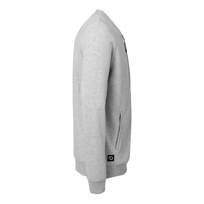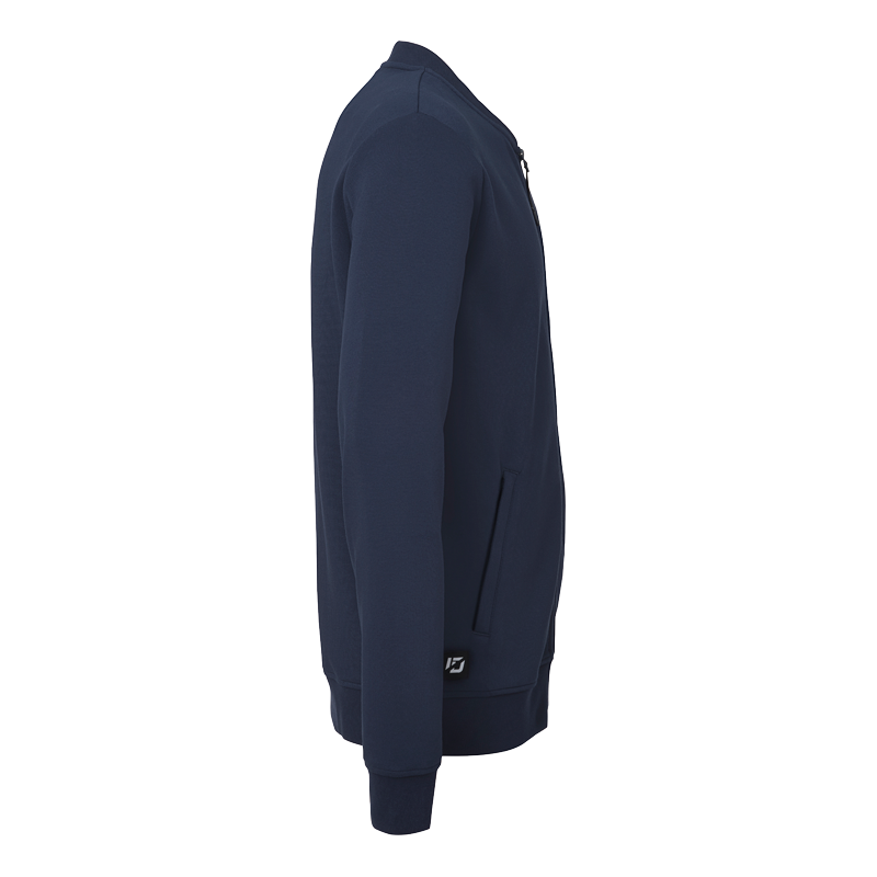 College-Jacke mit geripptem Stehkragen und Rippabschluss am Ärmel. Seitlich ist die Jacke mit verschließbaren Reißverschlusstaschen ausgestattet.