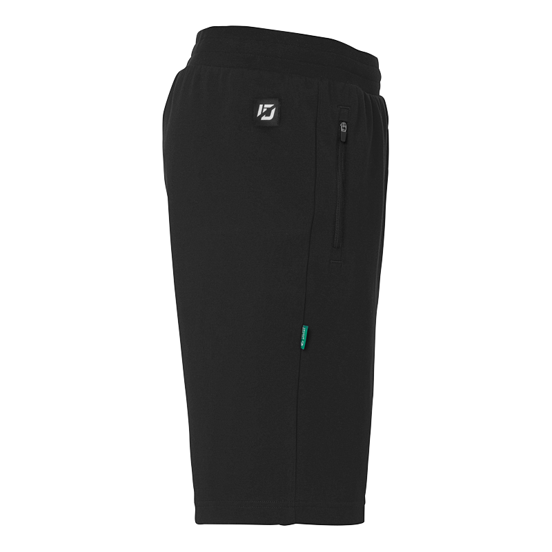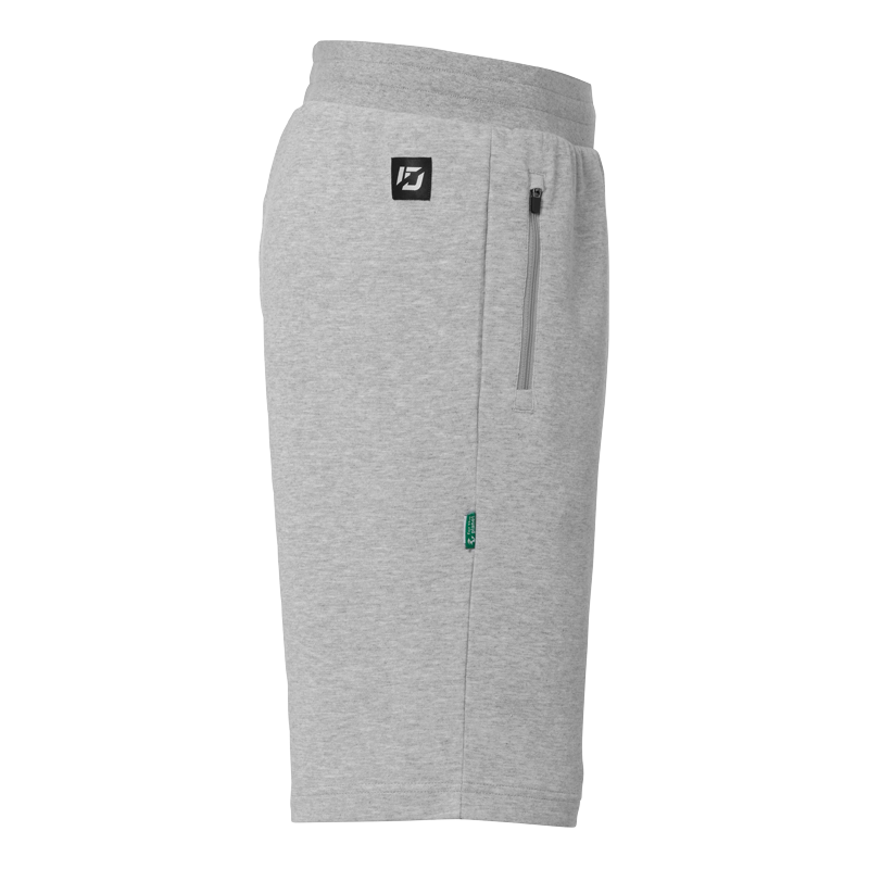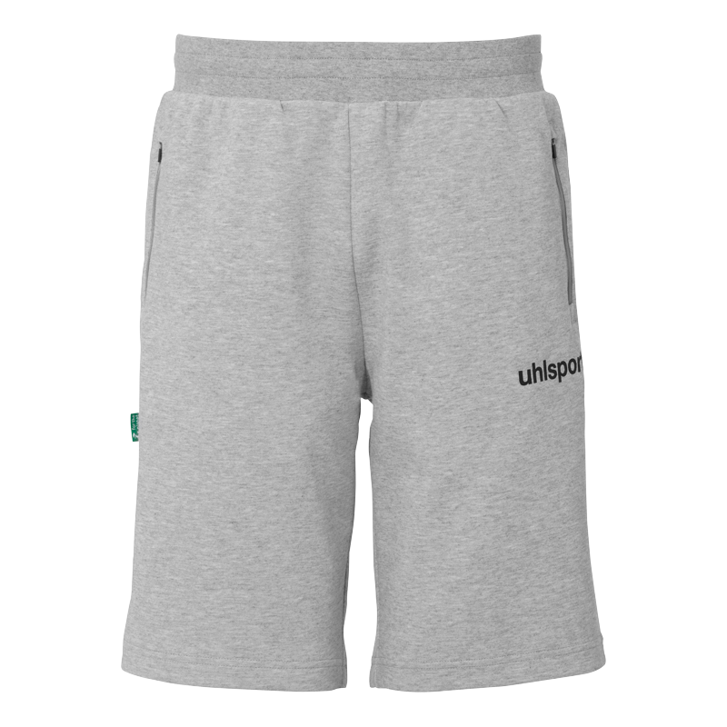 kurze Jogginghosen / Baumwollshorts, aus der Fashionlinie „ID“ des Herstellers uhlsport. Die Shorts besitzen seitliche Reißverschlusstaschen und einen elastischen Bund mit Kordelzug für einen perfekten Halt und Abschluss