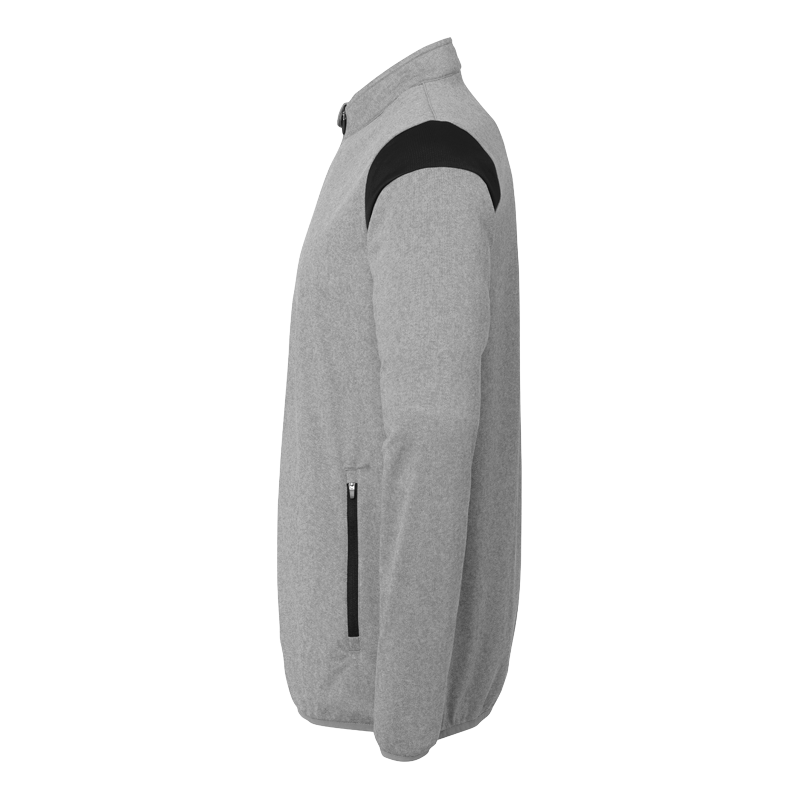 Jacke besitzt einen Stehkragen sowie zwei seitliche Reißverschlusstaschen.