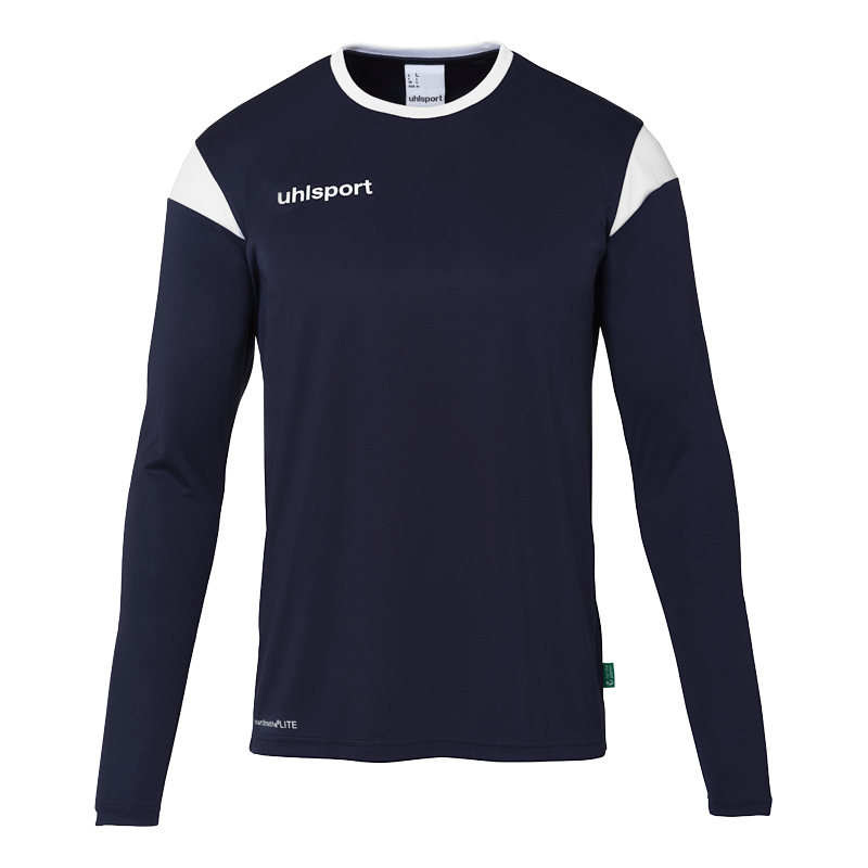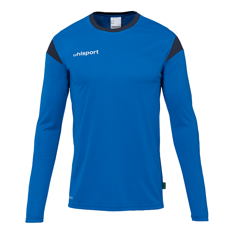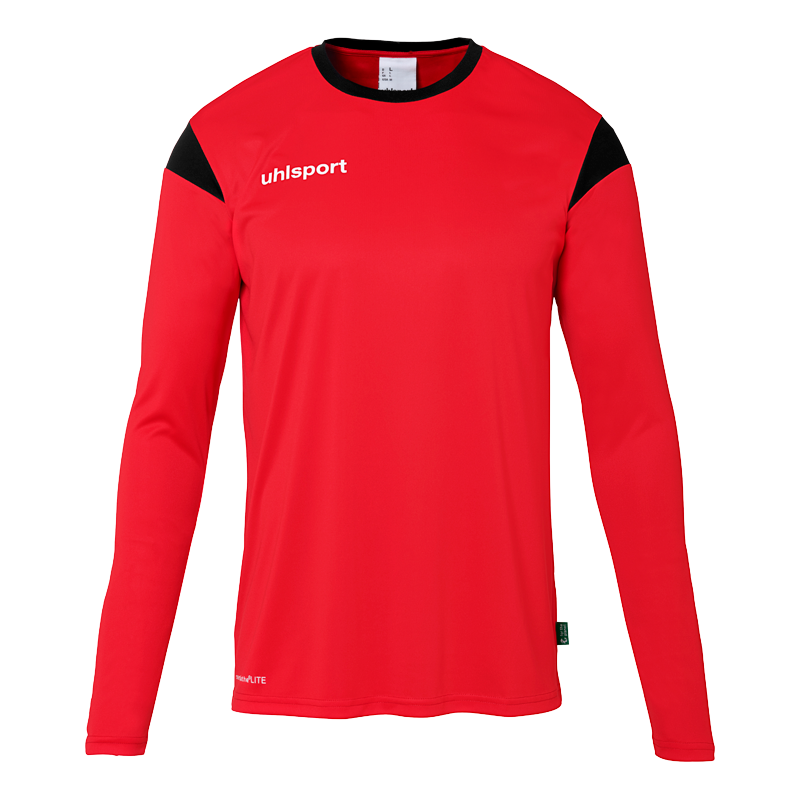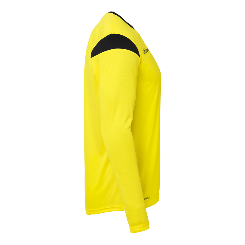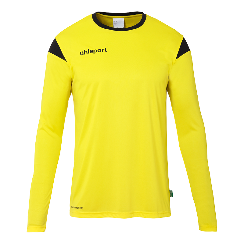 Langarm-Trikot der uhlsport-Kollektion „Squad27“ mit kontrastfarbenen Einsätzen und smartbreatheLITE-Ausstattung für eine optimale Atmung des Textils.